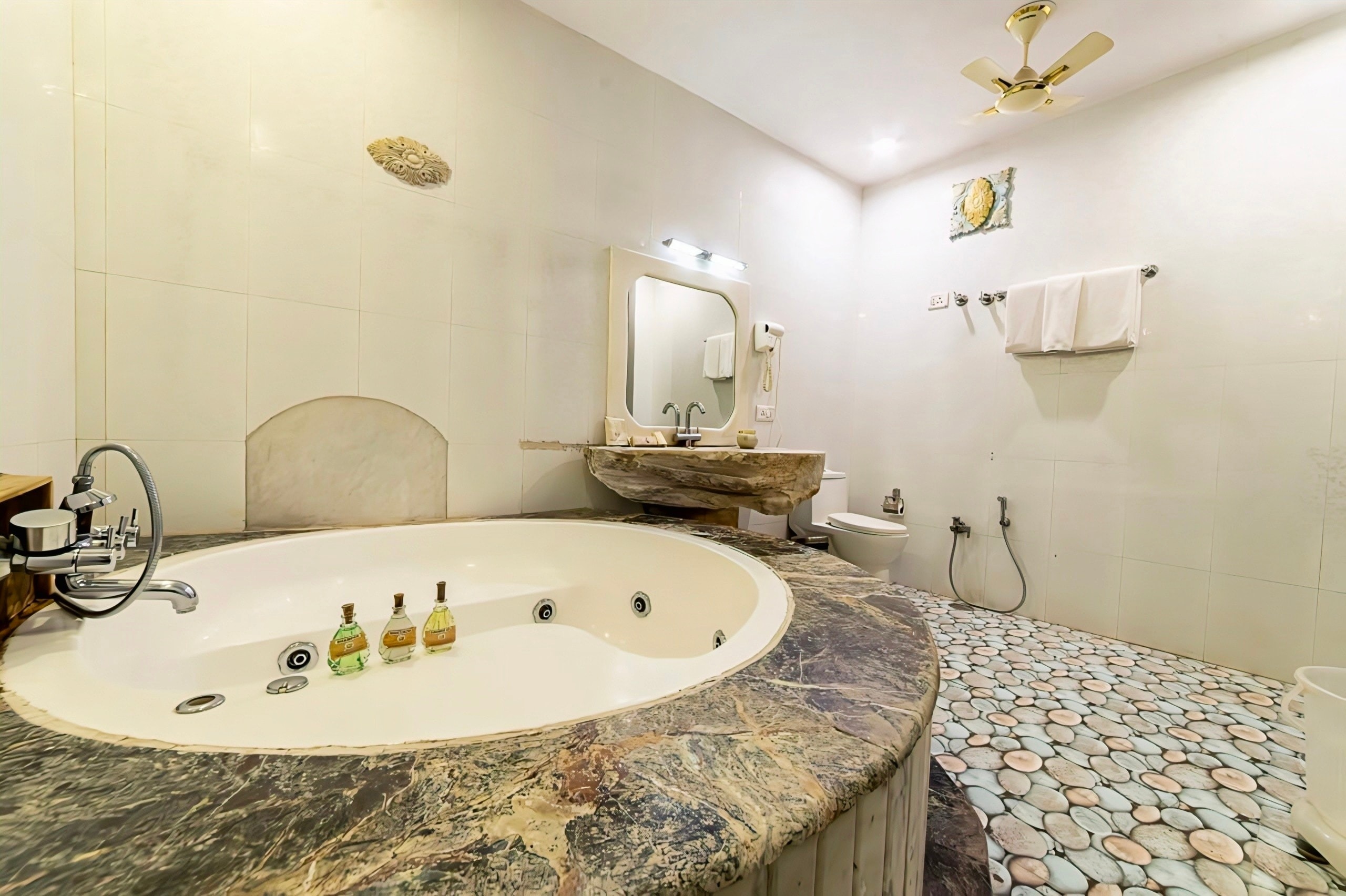 Lohagarh Fort Resort & Spa Jaipur is a 4-star luxury hotel with a rating of 8.9 out of 10, which is considered very good. It is a highly recommended resort with two restaurants, an outdoor pool, and a 24-hour business center.